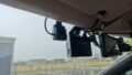 アクアはミラーの基部は純正のままであり、ルーフまでのクリアランスが充分に確保できたため、ミラー上のフロントガラスにインナーカメラを貼り付けています。