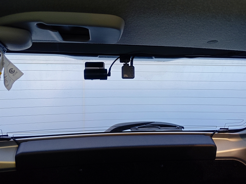 さらに今回は、セルスターのCS-2000SMのような大型デジタルミラーの裏に取り付けているため、運転席からはほぼ見えません。
