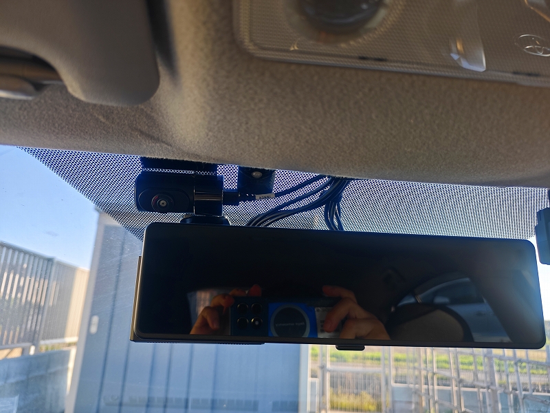 純正サイズのルームミラーであっても、カメラ本体やディスプレイ下部が少し見える程度で、実用上は大きな問題になりにくいでしょう。