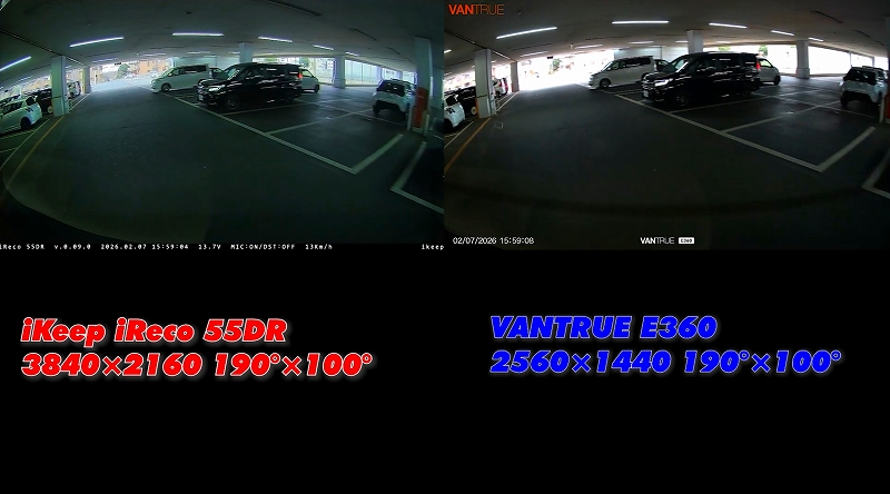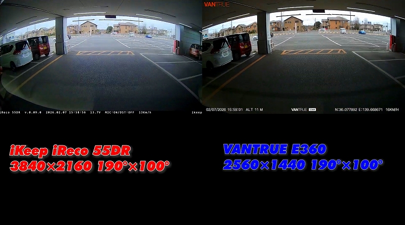 今回は、iRecoの最大の競合製品であるVANTRUE「E360」と比較しながら、iRecoのHDR補正精度を検証しました。