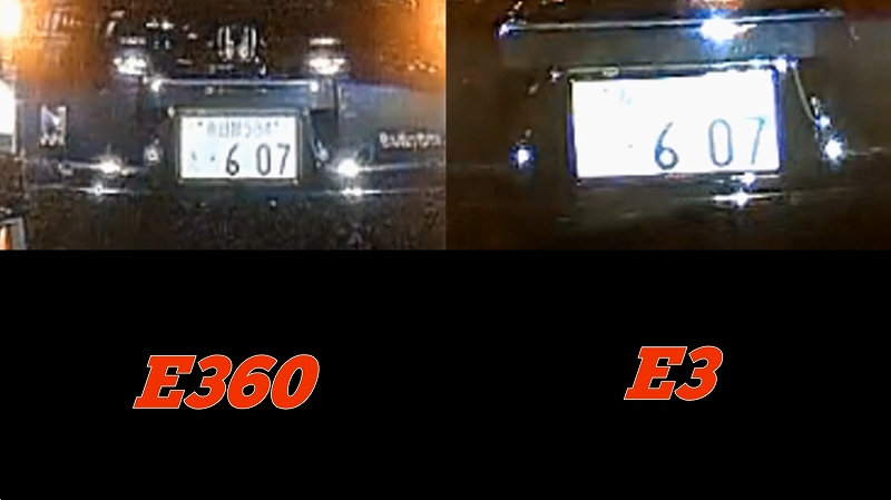 そのため、ナンバー認識重視の設計であるE360と比べれば、後続車ナンバーの読み取り性能では及ばない場面もあります。