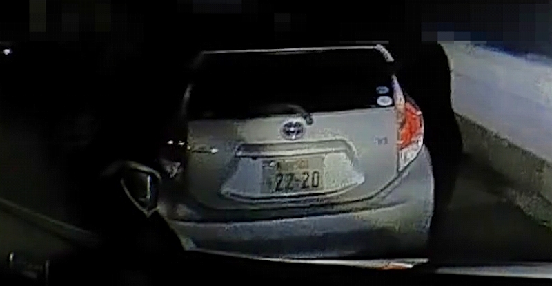 夜間の先行車ナンバープレート撮影は、ドライブレコーダーにとって非常に難易度の高いシーンです。