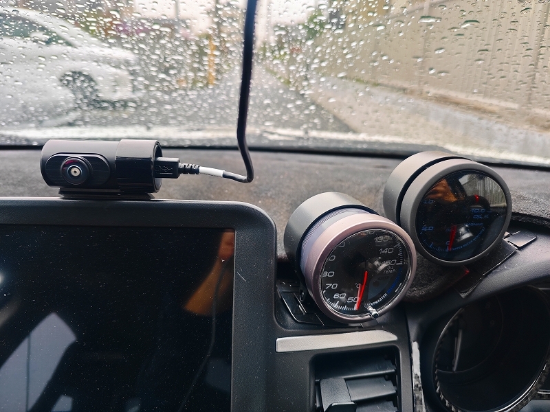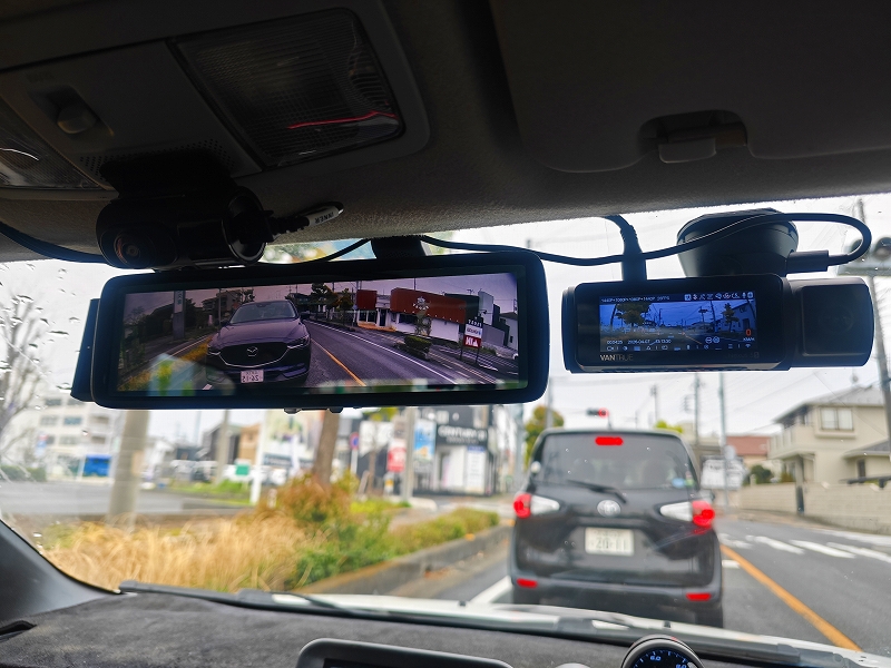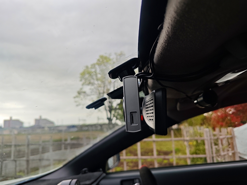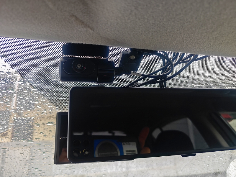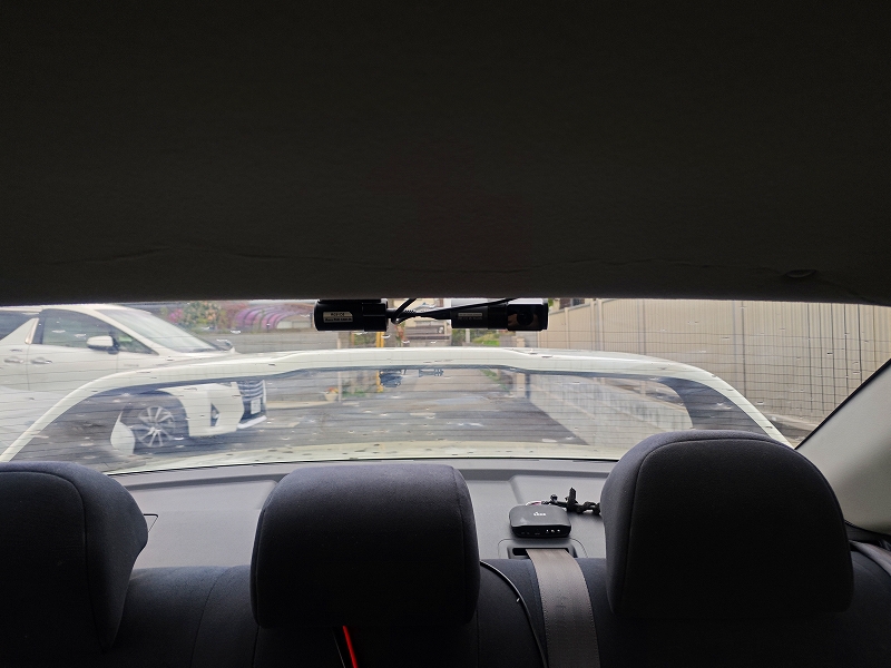 さらに今回は、MAXWINのMR-A001のような大型デジタルミラーの裏に取り付けているため、運転席からはほぼ見えません。