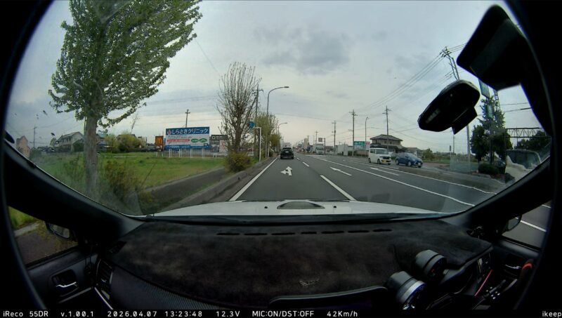 この位置では、iReco本体とデジタルミラーが障害になり、運転席側の視界を遮ってしまいました。