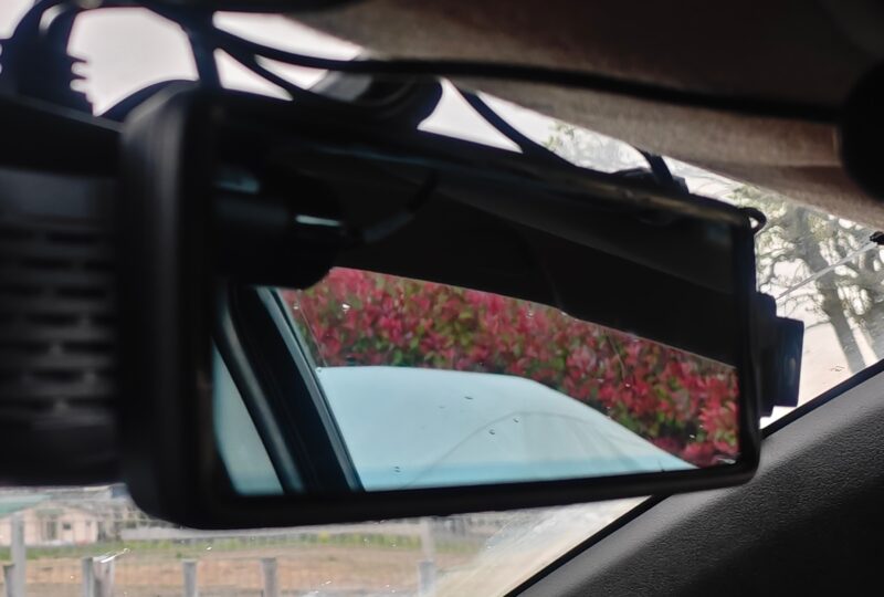 一般的なドラレコのインナーカメラはここまで広角ではないためミラーが視野から外れやすいのですが、iRecoは水平190°の広角ですので、その視野角をしっかり活かせる位置に取り付ける必要があります。