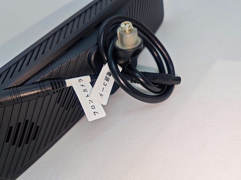 背面のステーの根元からは、電源+リアカメラターミナルケーブルとフロントカメラケーブルが伸びています。