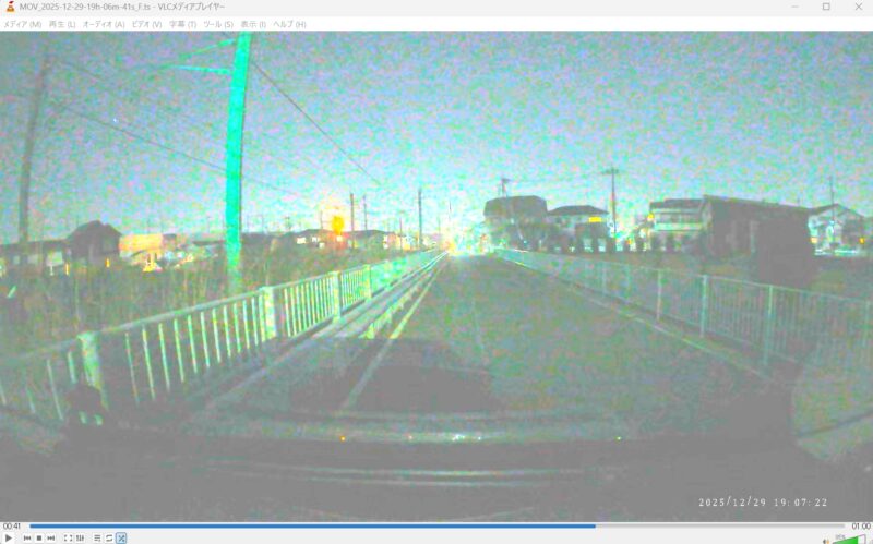 夜間の映像は前後カメラとも最近のSTARVIS系のドラレコとしては暗めの部類に入ります。