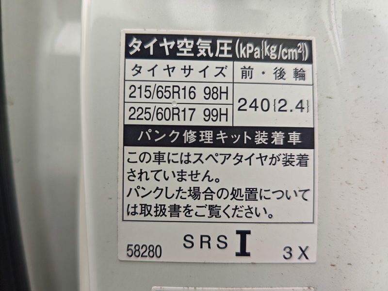 - 純正タイヤ:225/60R17 99H(JIS規格)