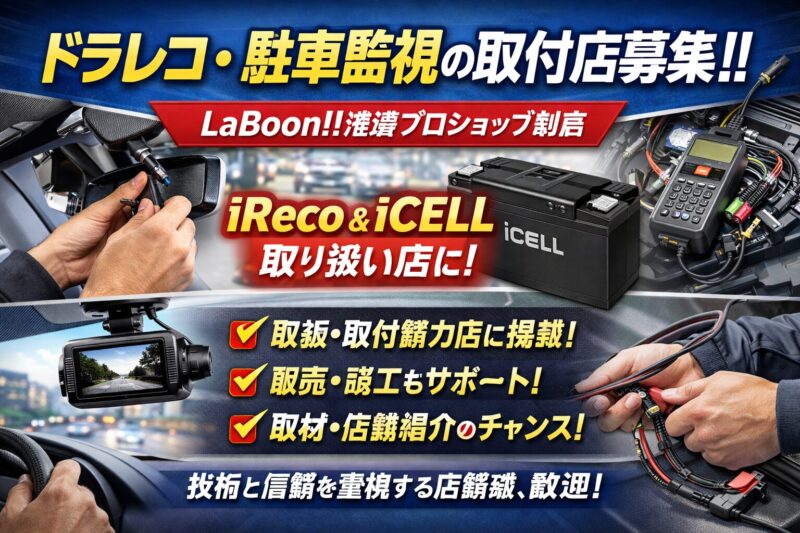 LaBoon!!・iKeepでは、ドライブレコーダーや駐車監視の施工に強い店舗様とのネットワーク構築を進めています。