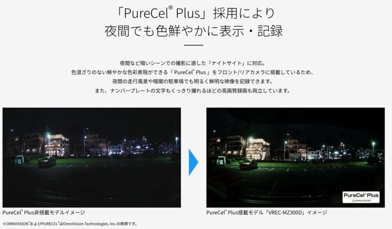 イメージセンサーは前後カメラともSONYのSTARVIS系ではなく、Ominivisionの「 PureCel® Plus 」に対応したものとなっています。