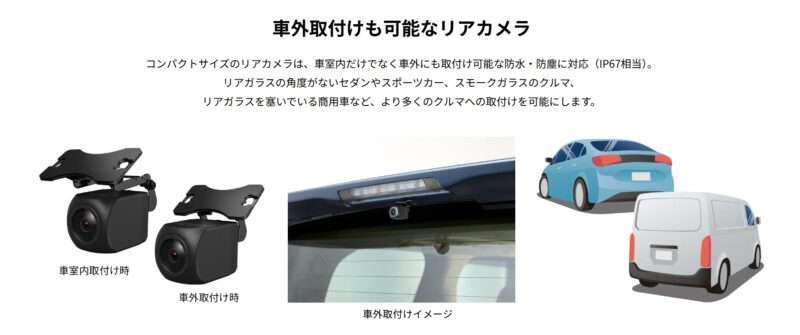 また、日本メーカーでは珍しくリアカメラを車内・車外兼用としたのは評価できるポイントです。